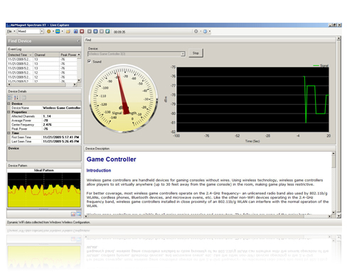 AirMagnet 的無線頻譜分析儀經由提供完整的Wi-Fi 頻譜瀏覽、標明干擾來源、繼而追蹤干 擾源所在,可以協助無線網管人員快速的鑑定和解決相關之網路問題。